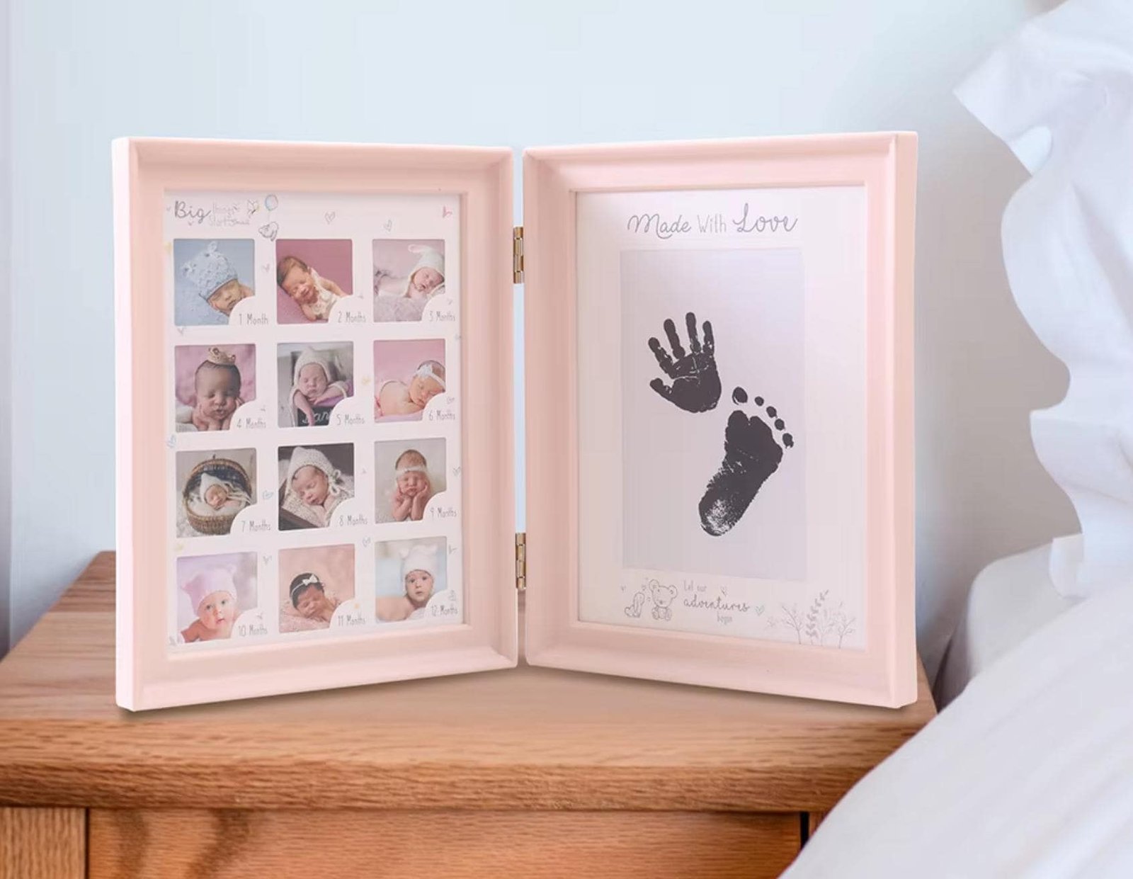 - 0–12 Month Milestone Display – Dedicated photo slots to capture each month of your baby’s first year.